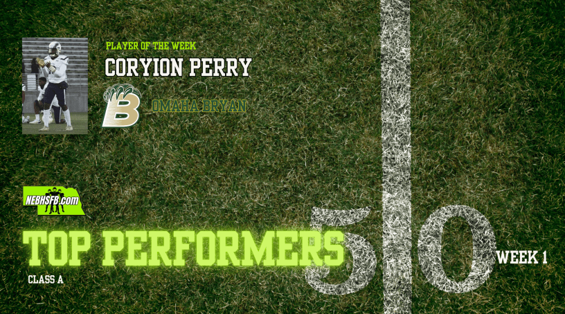 Coryion Perry | Omaha Bryan – In his first game back in Nebraska, the 5’11, 180-pound senior completed 18-of-26 passes for 353 yards and three touchdowns in a 47-7 win over Omaha South. Perry also reeled in a 62-yard touchdown pass in the win for the Bears. Perry spent his sophomore season at Omaha Central before playing at Carrollton Newman Smith in the Dallas-Fort Worth area last season.