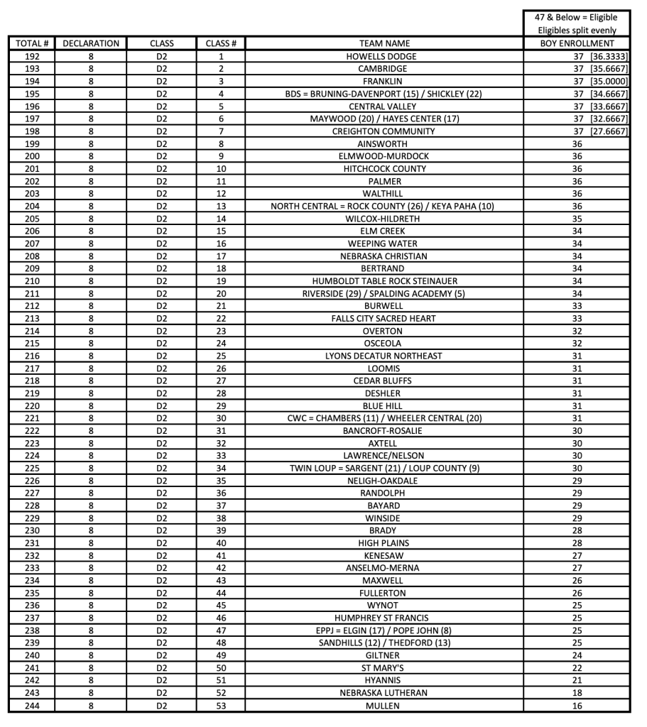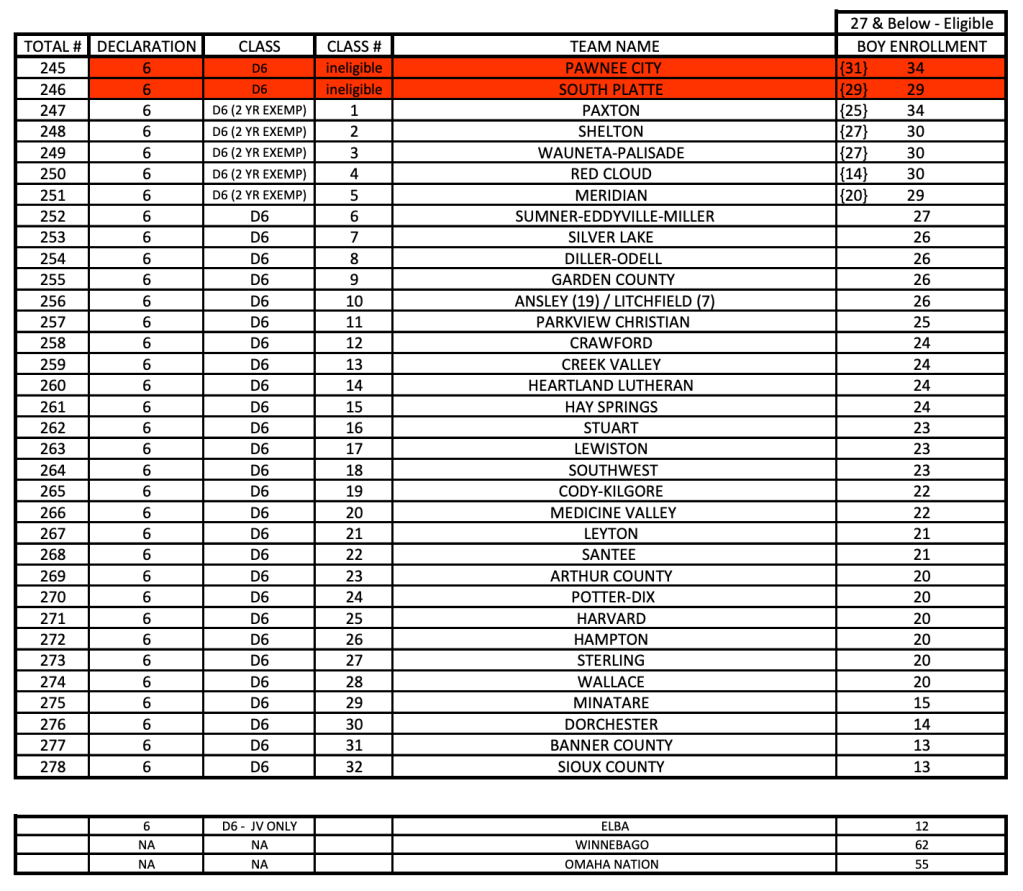 Pawnee City and South Platte will opt to six man and not be eligible for the playoffs.